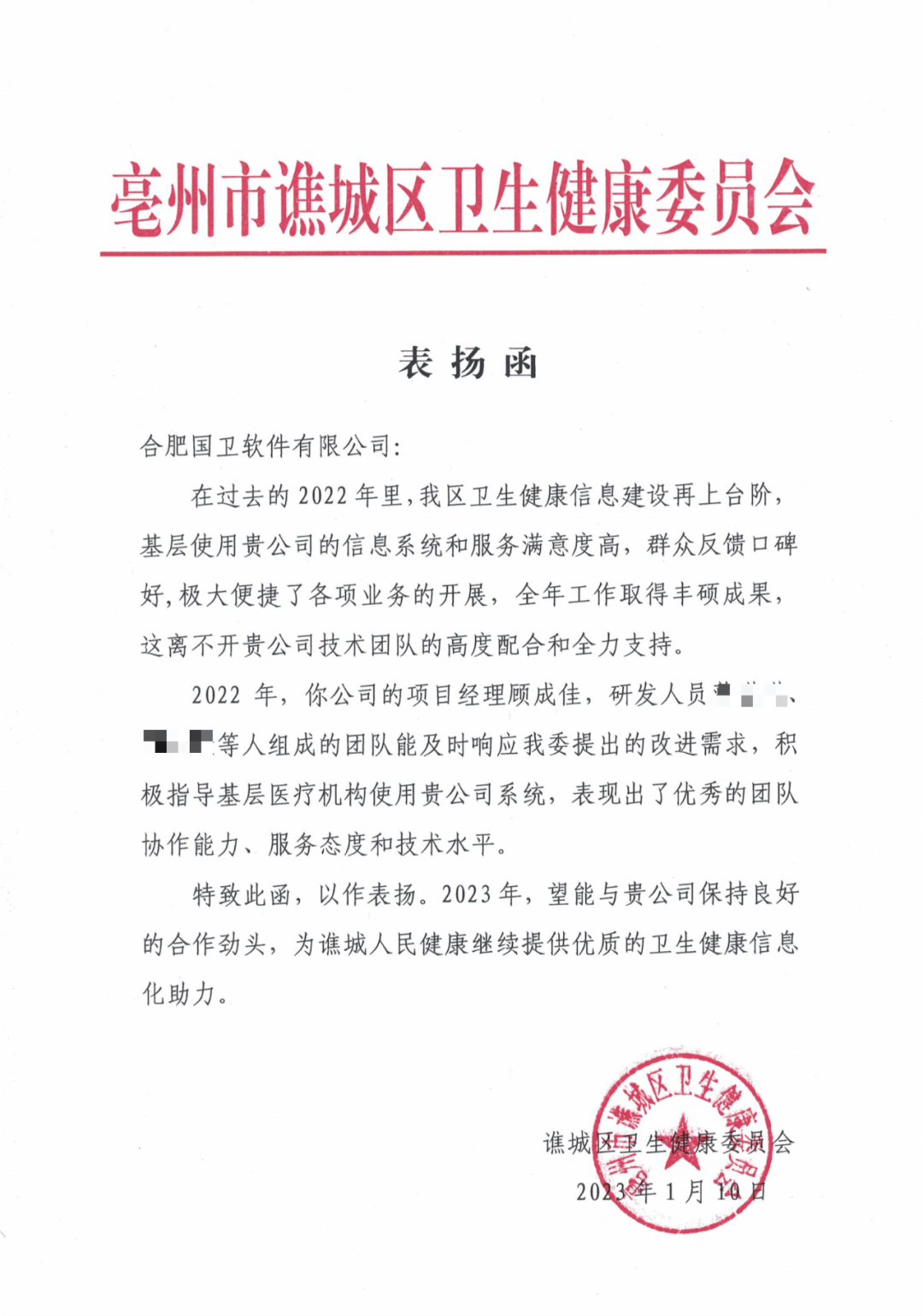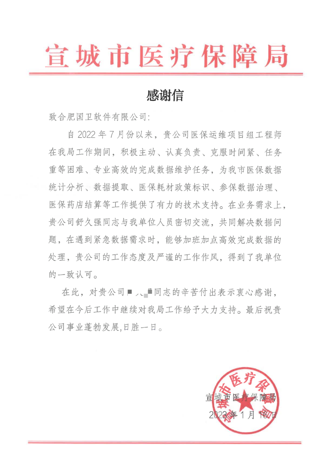 2023年新年伊始,國(guó)衛軟件陸續收到了客戶發(fā)來的感謝能黃信,我們倍感榮幸。感謝信是對(睡理duì)我們過(guò)去一年工作的肯定但街,也是促進(jìn)我們改進(風懂jìn)不足、不斷前行的動力。